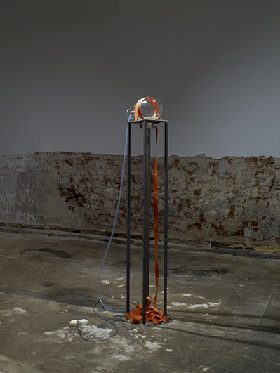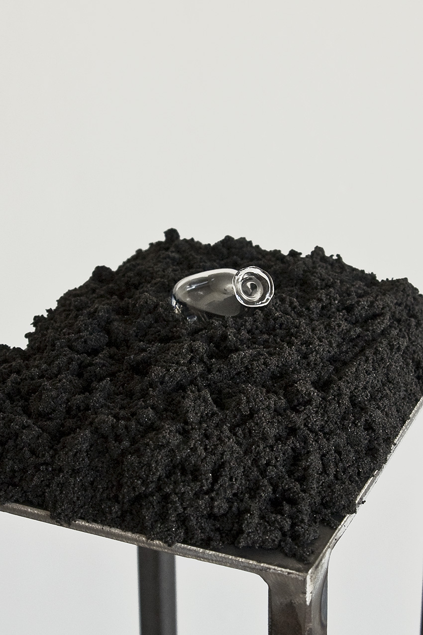 3 iron, oilsand, water from Black Sea, handmade flask from Bosporus; 130x17x23 cm