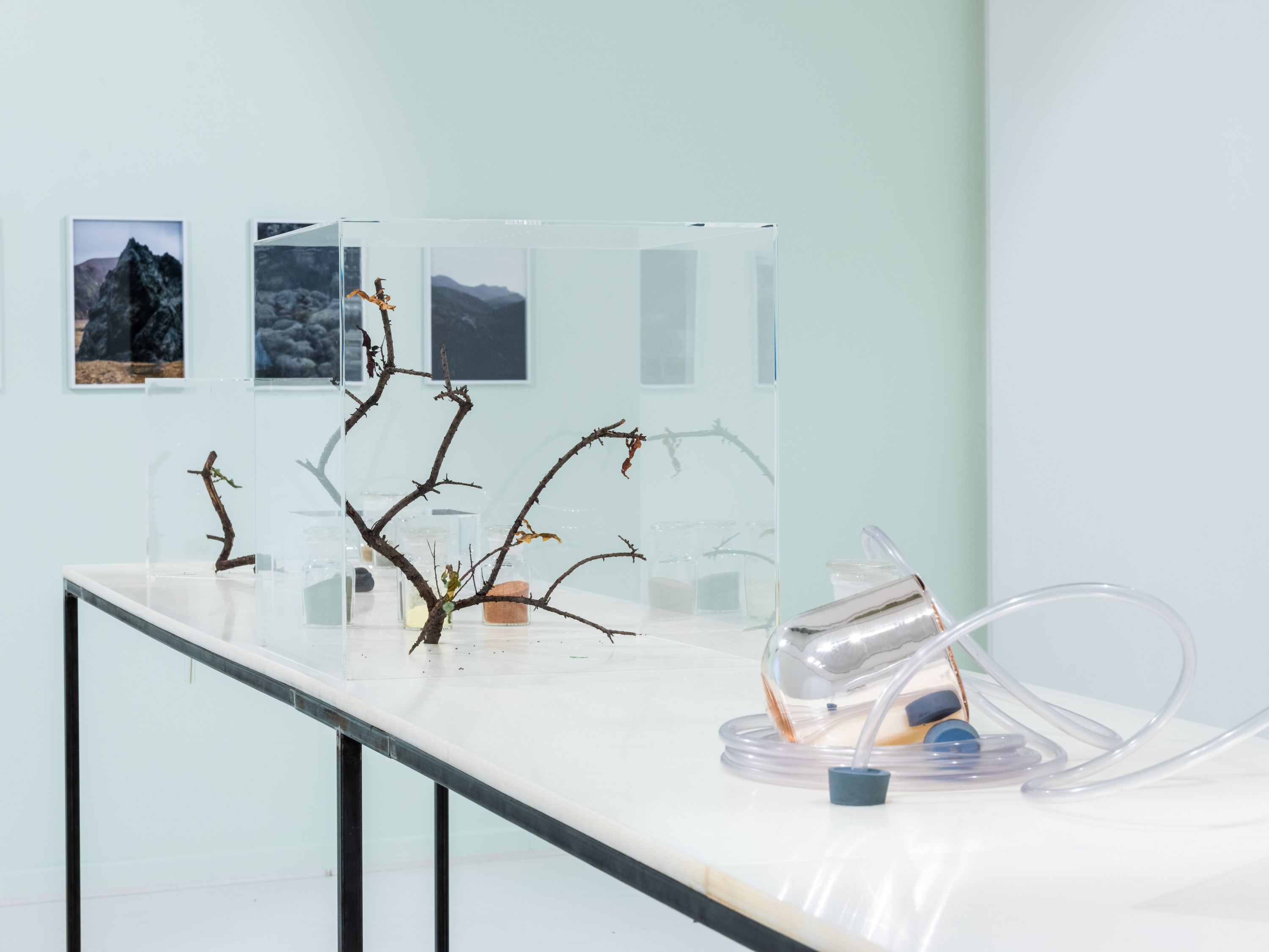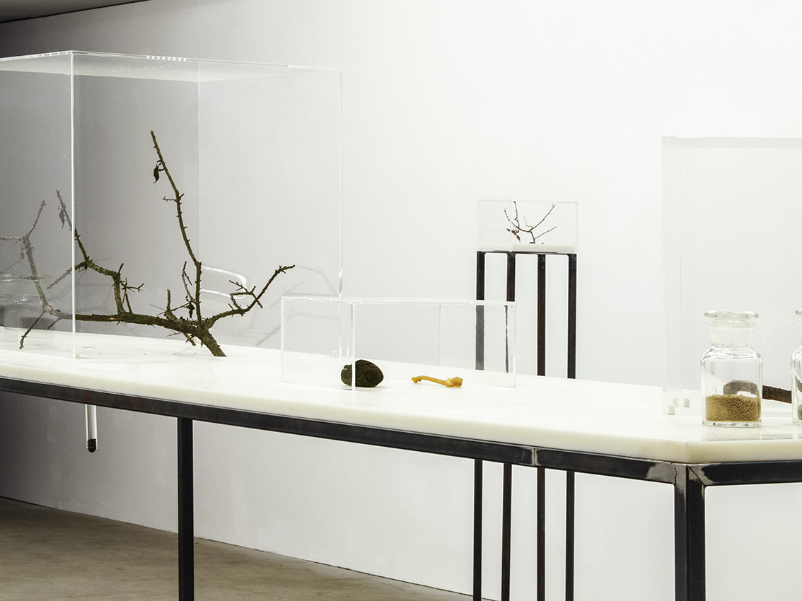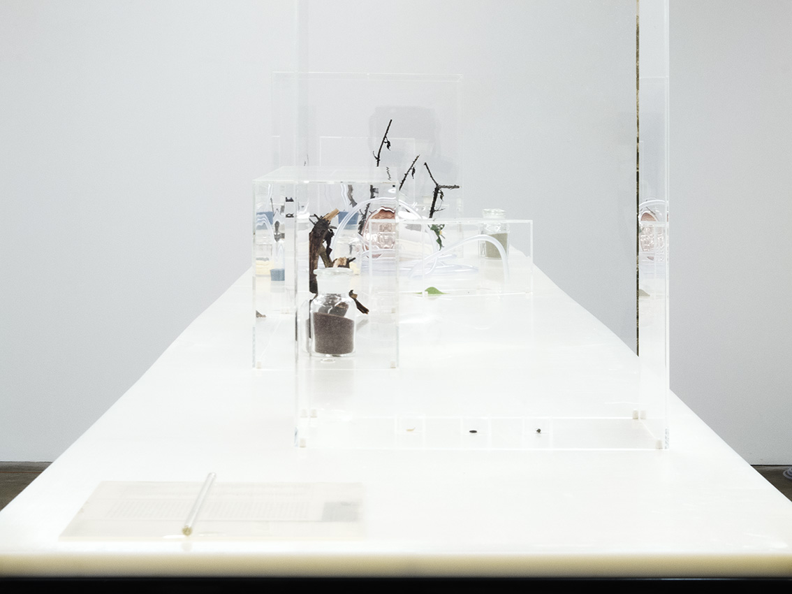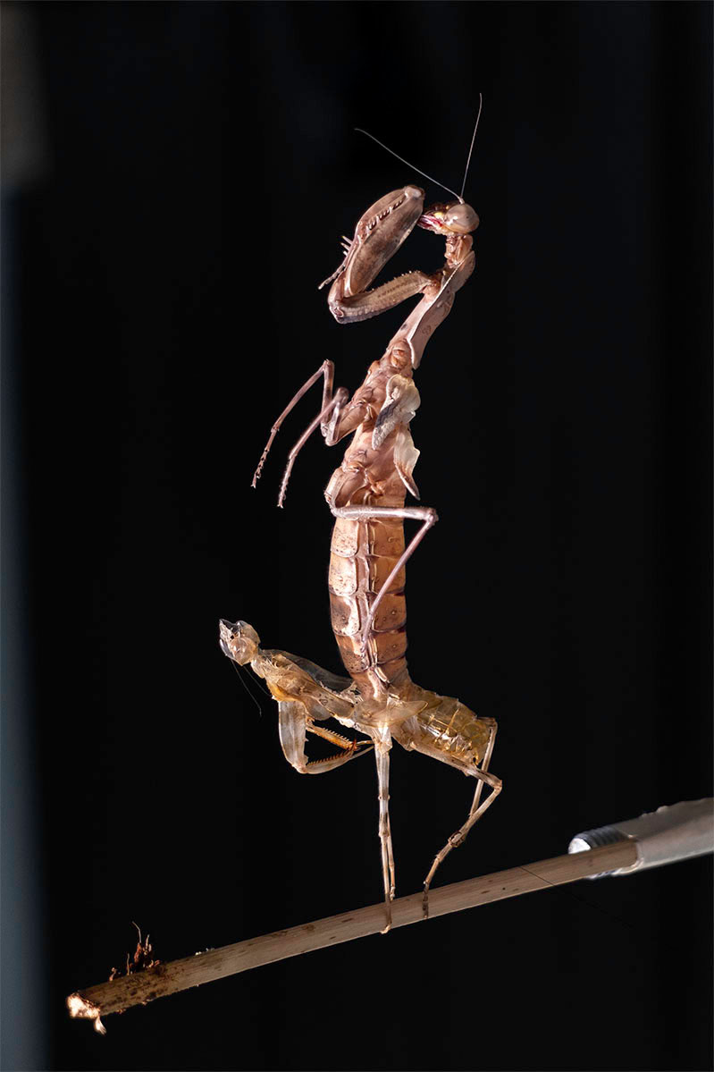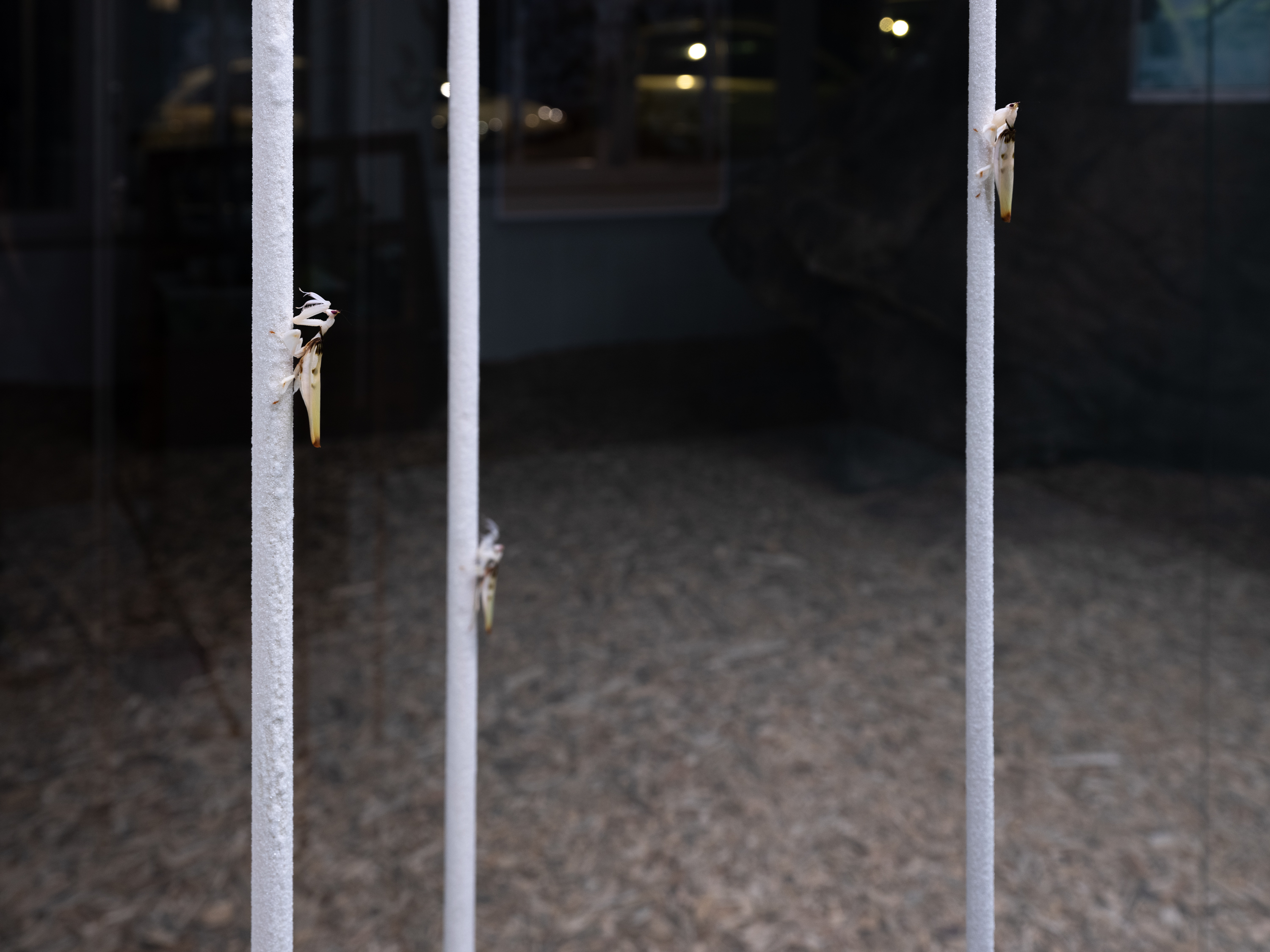 polyamid, steel, acrylic, soil, Phyllocrania Paradoxa - ghost mantids, test tubes, flys,vessels