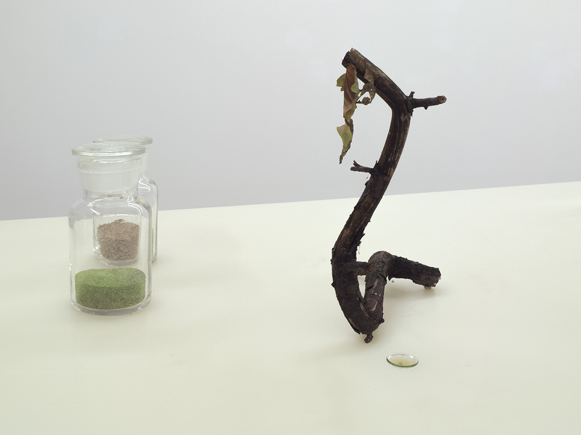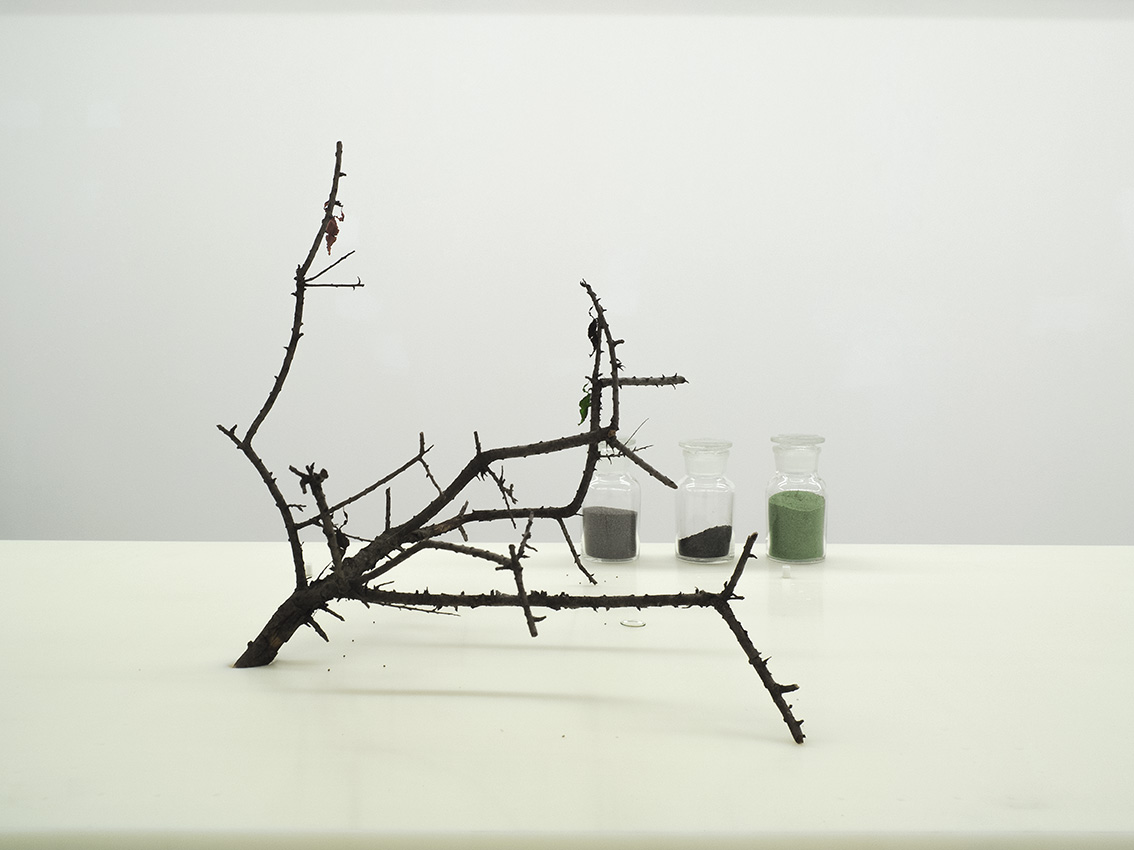 1 walnut tree, oil, iron, sulfur, yarn, handmade soap from ghana; 18x80x160 cm