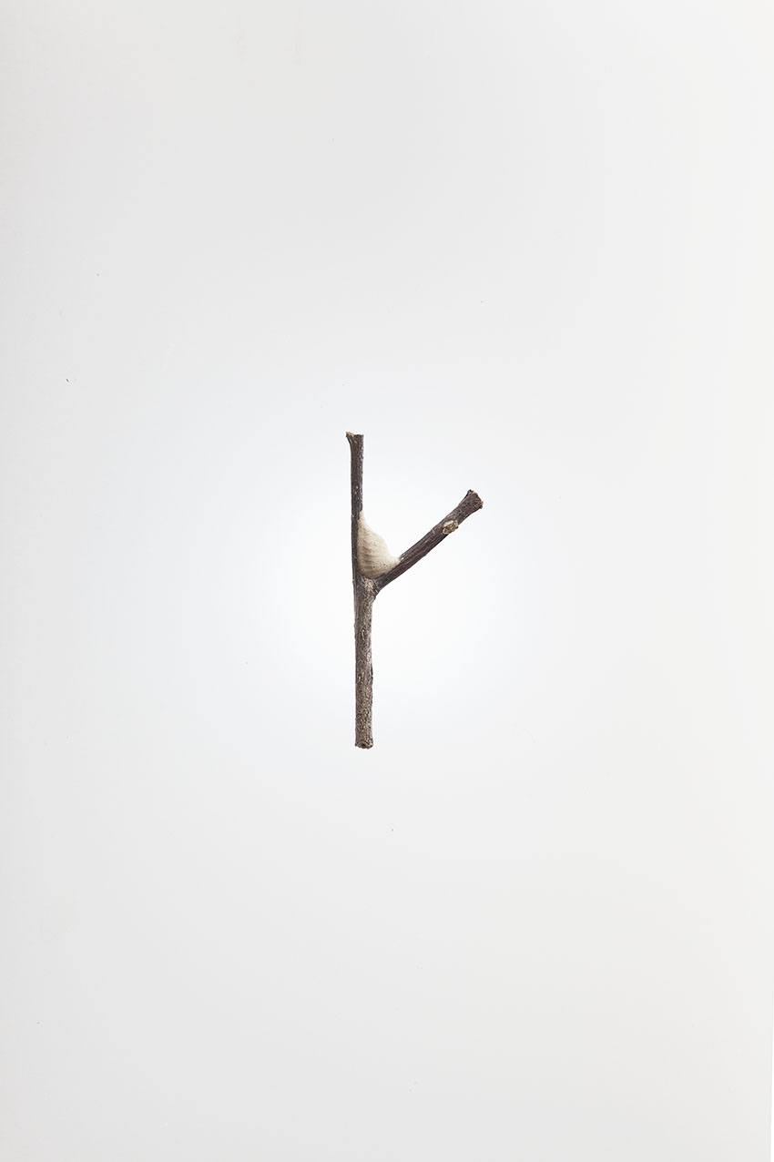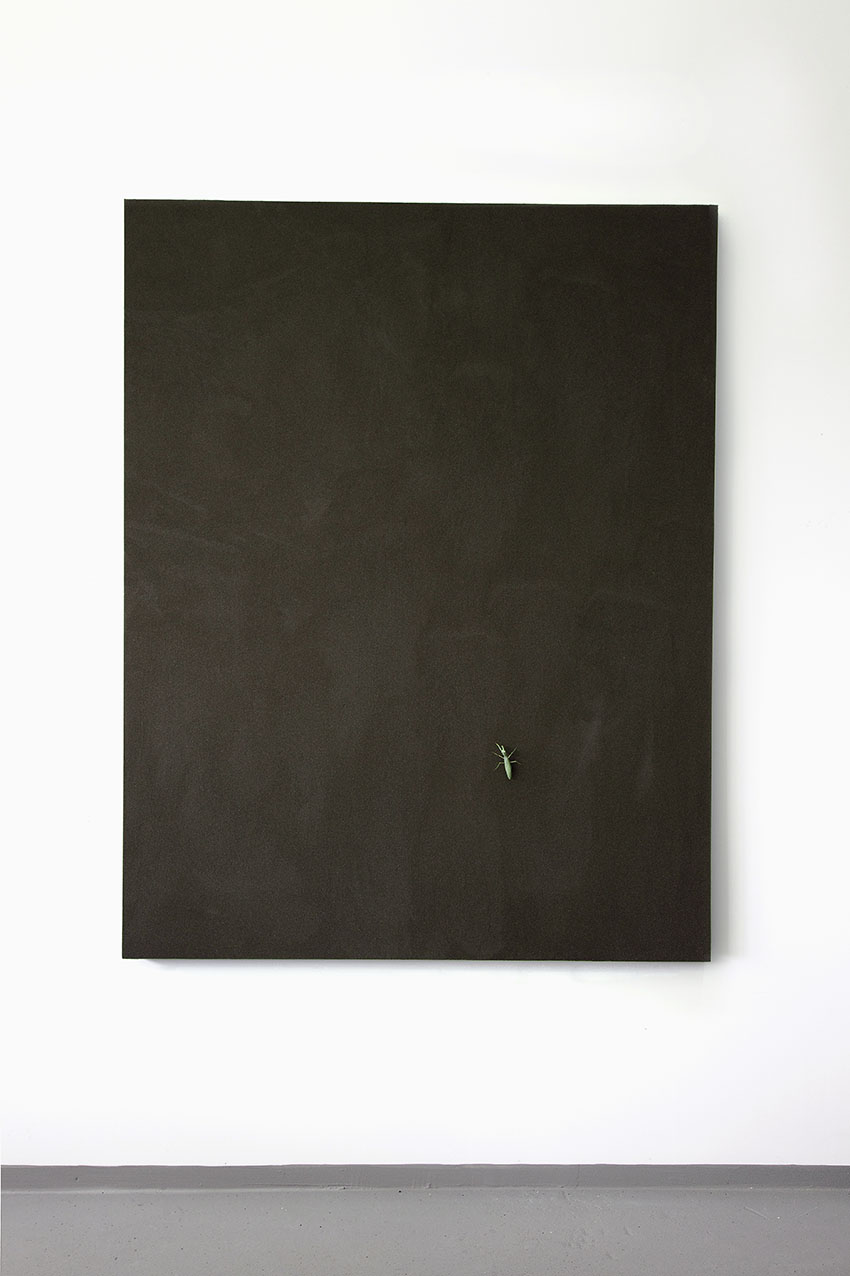 2 Phyllocrania Paradoxa–ghost mantis, iron, wood, polyamid; 140x17x23 cm