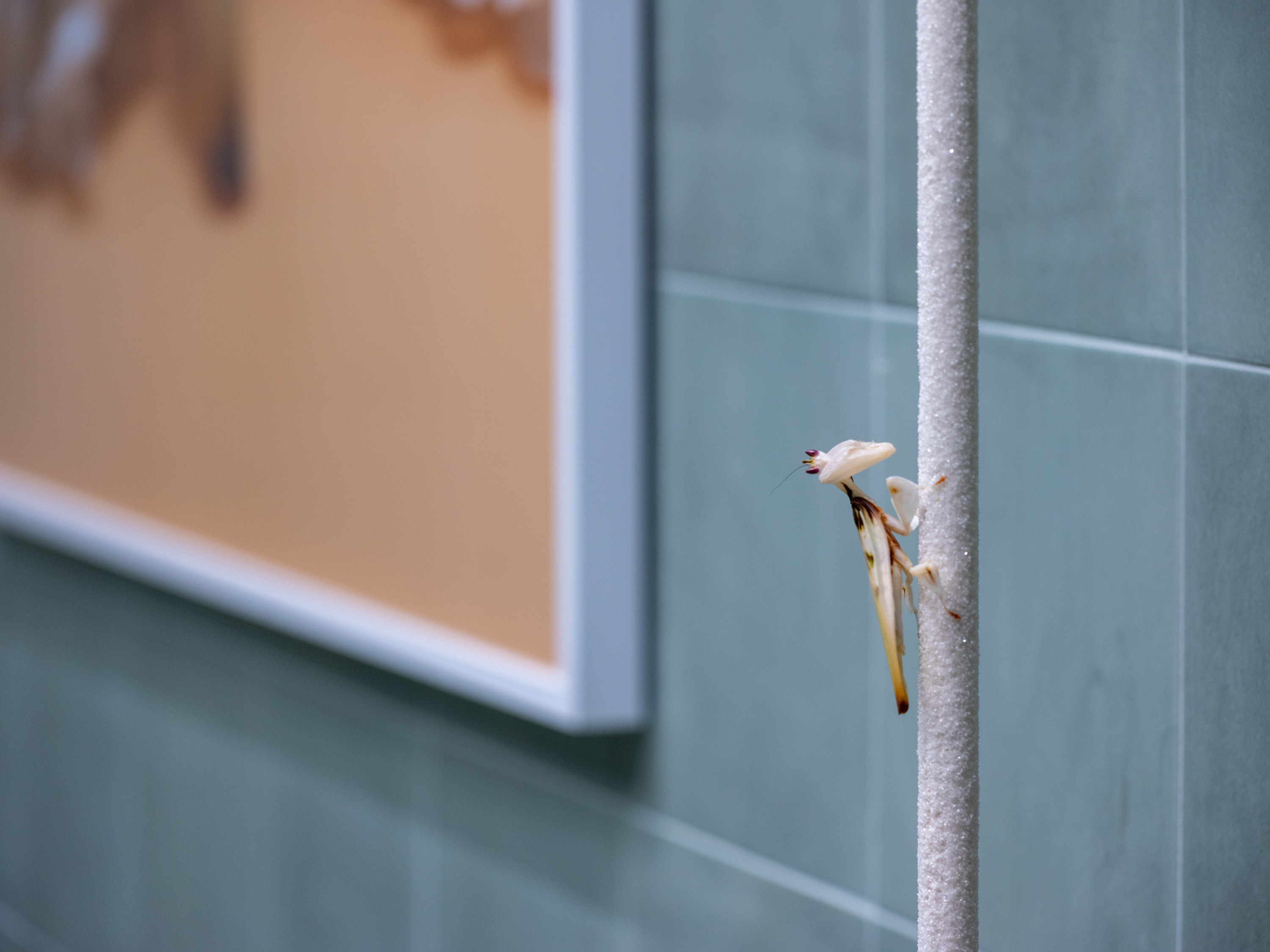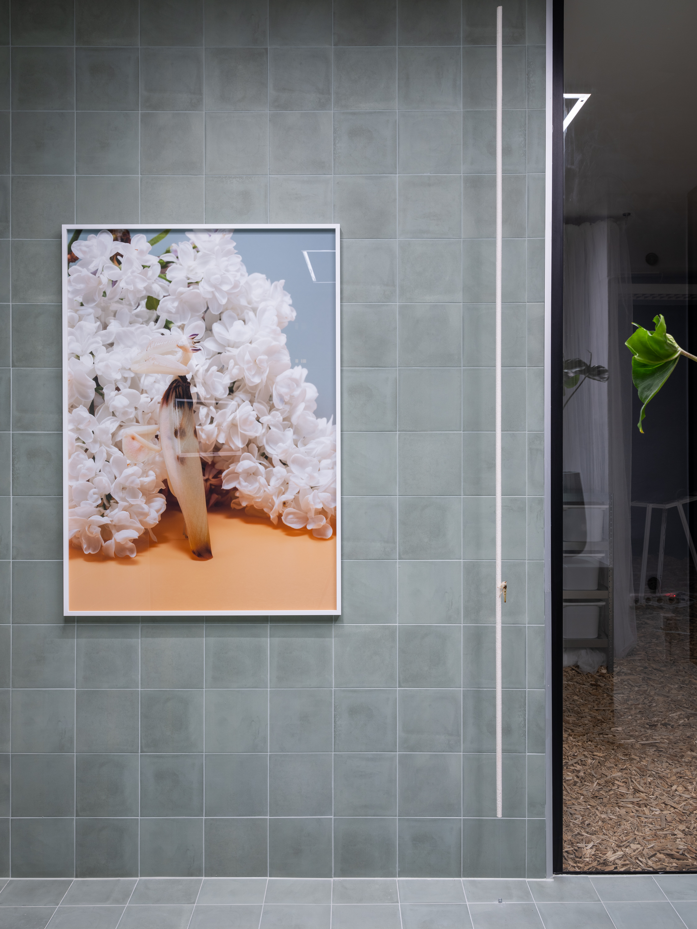 Hymenopus Coronatus, flies, corundum, ceramics, fine art print, video, medical screen, glass, tiles