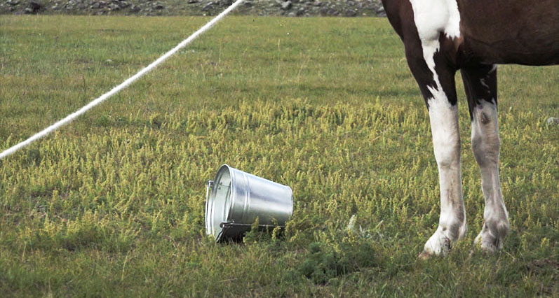 (12 horses, 12 poles, 12 metal buckets, water, rope, horsehead fiddle, musician)